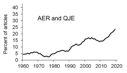 But growing concerns in the 1990s about the quality of statistical methods in economics culminate in a pivot to less theoretical work (Angrist and Pischke 2008)