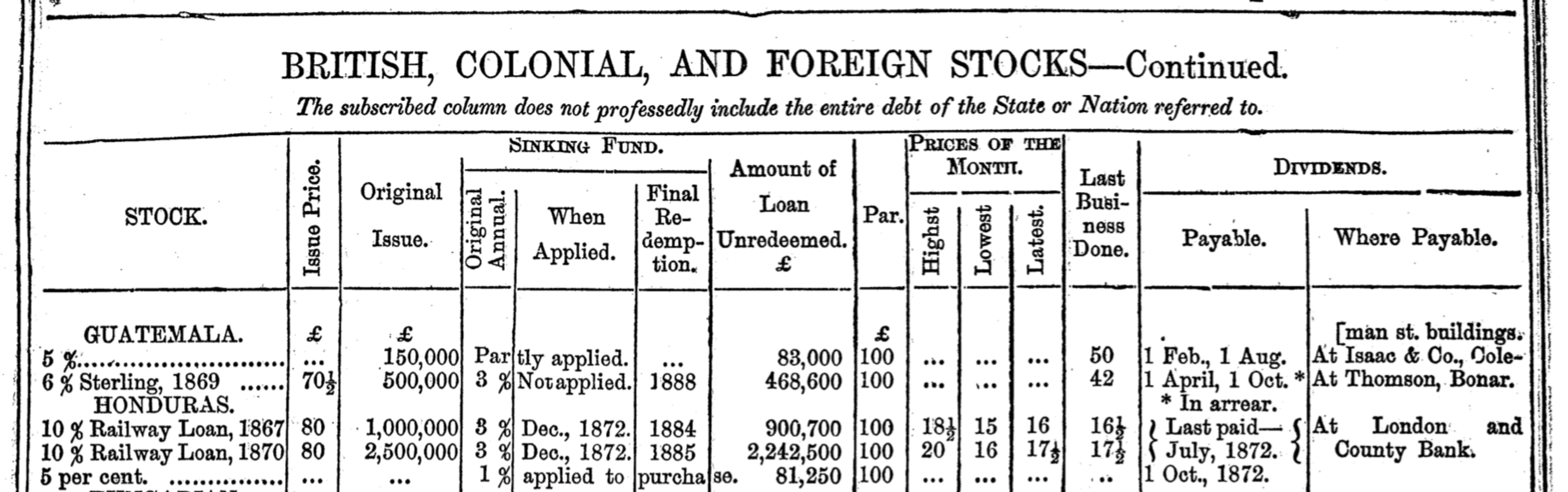 Take the Honduras 10% Railway Loan, 1867 as an example: