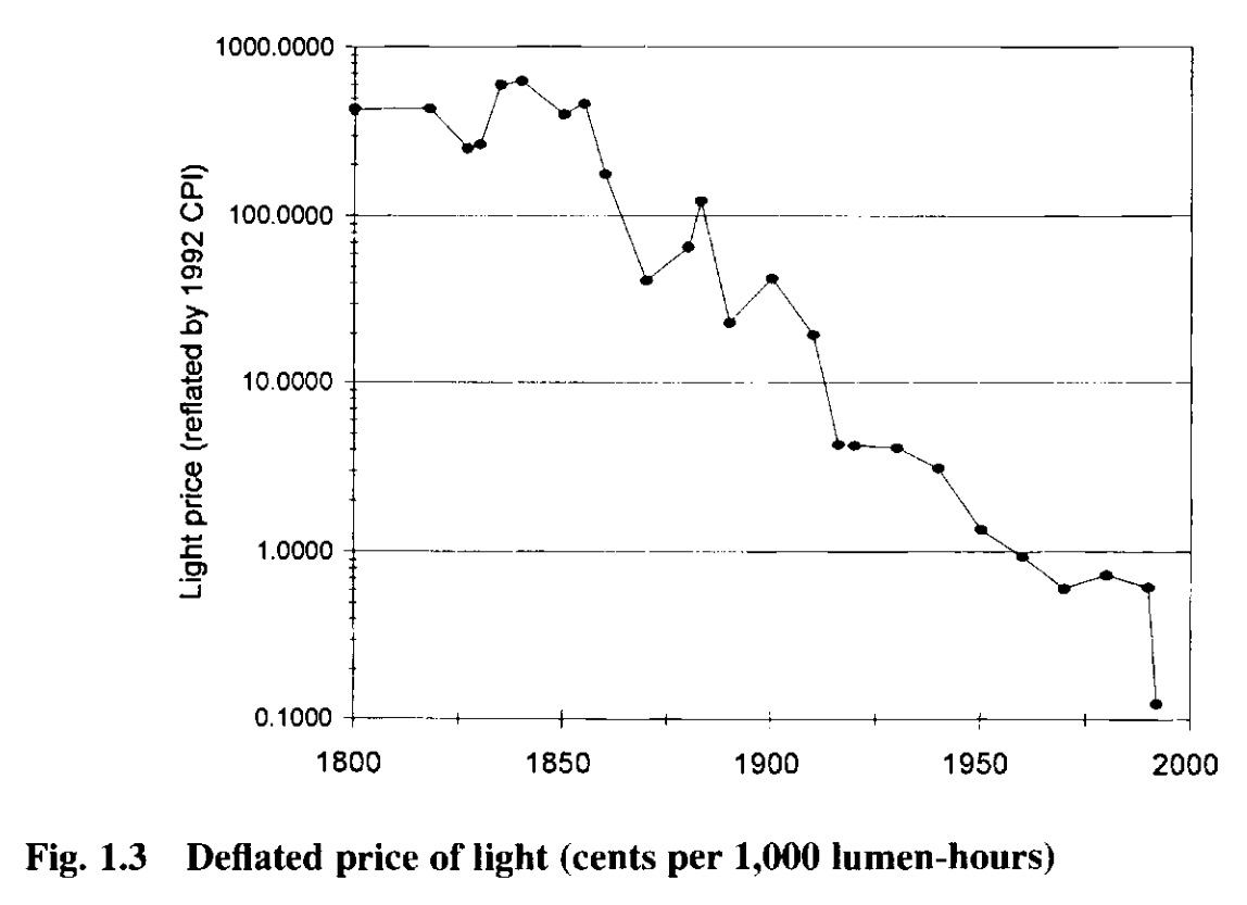Nordhaus (1997) chooses a deliberately simple case: the price of illumination