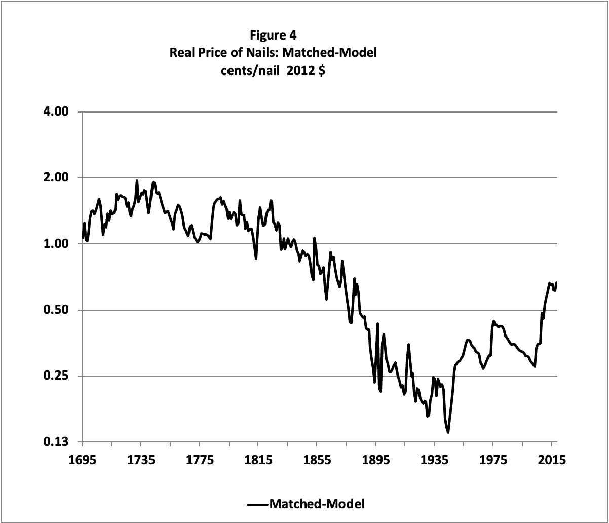 The data: real price of a nail in 2012 US cents, 1695–2019